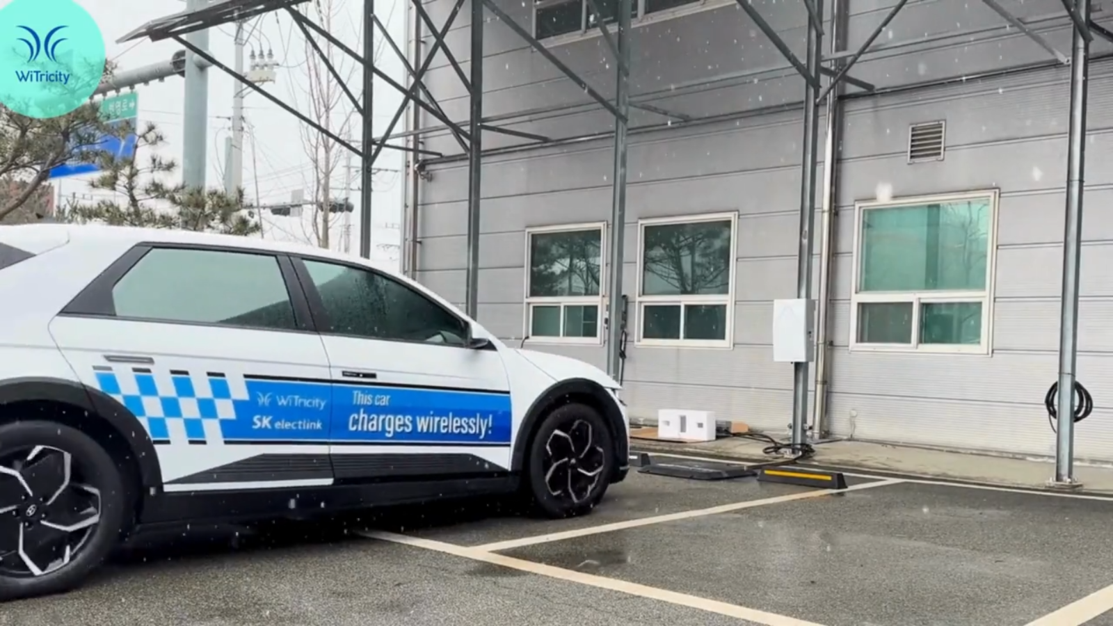 Wireless EV charging allows drivers to charge their vehicle by simply parking over the charging pad, without the need to plug in a charging cable. As seen in the video, the vehicle is equipped with a wireless receiving pad with the charging process controlled by a smartphone app.